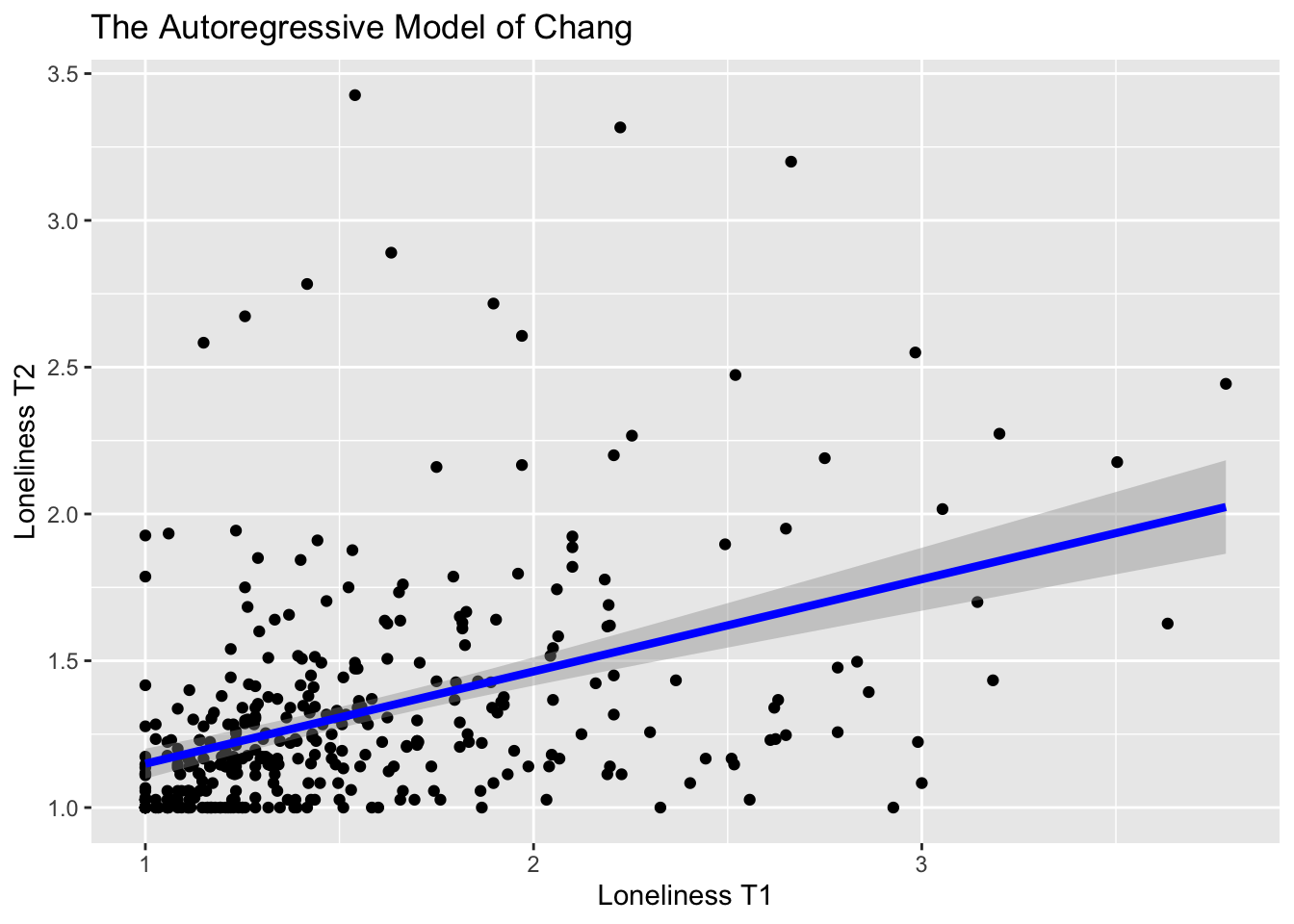 Alternatively, we expect a positive difference of (0.31) in loneliness at T2 for a every unit change in loneliness at T1